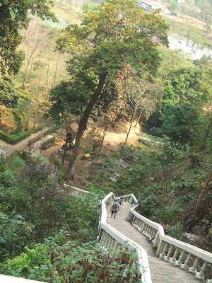 Puis le retour, on avait 4h d'avance pour anticiper la queue au bac, mais on était trop optimiste, on a attendu 5h30. On s'est occupé en faisant barrage aux voitures qui essayaient de doubler, ce qui nous a vallut les aplaudissements de Lao qui n'osaient pas protester et qui ont finalement pris la relève. Maëlle qui avait un gros rhume commençait à avoir un peu de fièvre, l'avantage d'attendre le bac c'est que l'on est près de l'eau, avec ça grande copine Jojo elles sont donc allées se rafraîchir dans le Mekong. Puis 4 d'entre nous ont passé le bac à pied et ont trouvé un camion qui les ont amené à l'aéroport où ils ont réussi à garder un guichet ouvert pour nous, on est arrivé à 19h4o, on a passé le check in et le contrôle des passeports en 4º vitesse pour s'asseoir à 19h50 dans l'avion (heure prévue de décolage), il faut bien être au Laos pour prendre l'avion en arrivant 10 minutes avant le décolage.